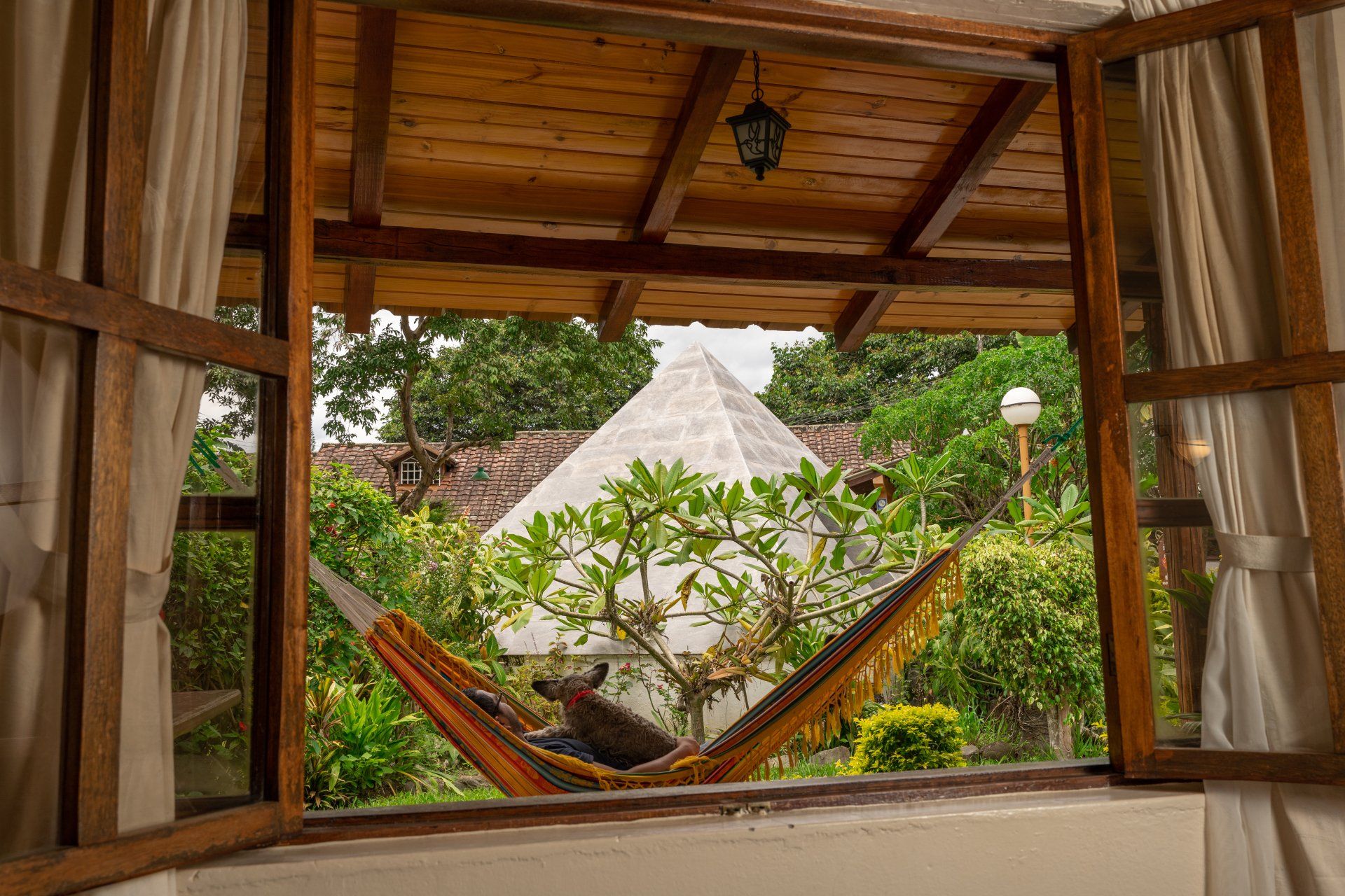 Cómodas habitaciones equipadas con Smart Tv, wifi, baño privado con agua caliente, con vistas a nuestros jardines, pirámide bioenergética y las montañas que nos rodean. Puede ser para una o dos personas.